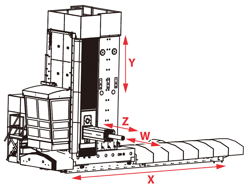 Y,Z,W軸的驅(qū)動 Y,Z,W三軸采用獨立的電力控制伺服驅(qū)動。X軸采用兩個電力控制伺服驅(qū)動系統(tǒng)。W,Z軸采用滾珠絲杠傳動。W,Z軸采用齒輪箱驅(qū)動。 |