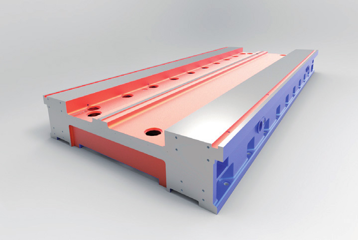 移動部件的導(dǎo)軌 X軸的導(dǎo)軌包括四個承載面,每個面包括9個液壓腔通過兩個獨立的動力單元,總計有36個封閉的液壓腔。 Y軸導(dǎo)軌的三個表面都經(jīng)過精密磨削。 主軸箱的導(dǎo)軌面包括兩個液壓腔帶有獨立的壓力油入口。 滑枕的導(dǎo)軌面包括16個復(fù)合材料接觸面的靜壓單元。 |