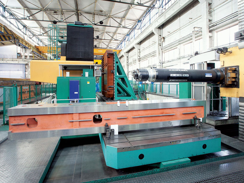 主軸箱 主要部分采用球墨鑄鐵鑄造,像其它部件一樣,滑枕裝配在L型溜板上,該單元可以對(duì)滑枕進(jìn)行自動(dòng)實(shí)時(shí)的變形補(bǔ)償。 主軸箱重量平衡:主軸箱的重量采用伸縮液壓缸來(lái)平衡,需要小的橫向移動(dòng)力,來(lái)降低加工過(guò)程中的損耗。 滑枕擾度變形補(bǔ)償:該補(bǔ)償系統(tǒng)是道斯公司的技術(shù),它通過(guò)一個(gè)特制的機(jī)電系統(tǒng)來(lái)進(jìn)行實(shí)時(shí)有效的自動(dòng)補(bǔ)償。 |
